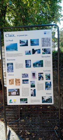 | les visiteurs étaient accueillis et attirés par des panneaux relatifs au bourg de Claix tout proche, avec des textes, des photos anciennes ou plus récentes qui donnaient le ton de la visite ! |