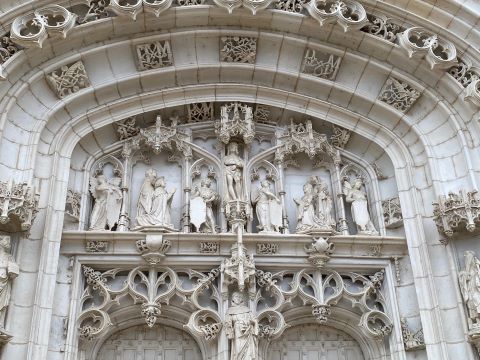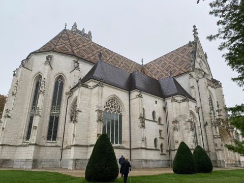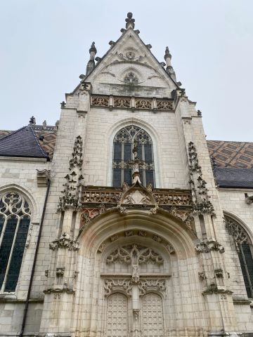 | A 10 h nous étions devant la magnifique façade du monastère Royal de Brou joyau du gothique flamboyant. Cette abbaye fut construite par Marguerite de Bourgogne comme mausolée pour son époux Philippe. Elle mourra sans voir son œuvre achevée. |